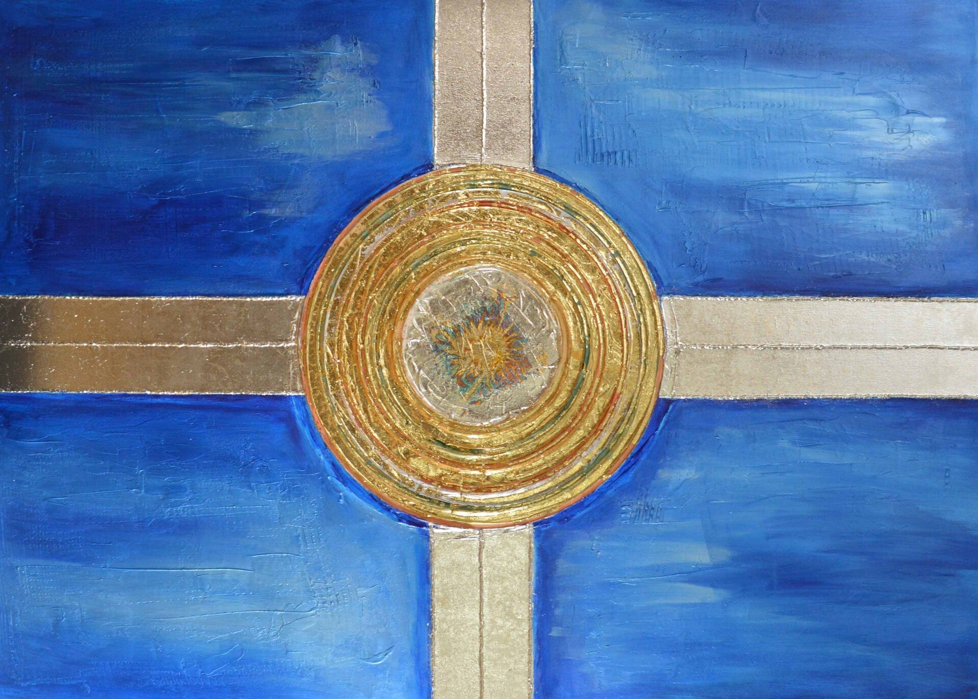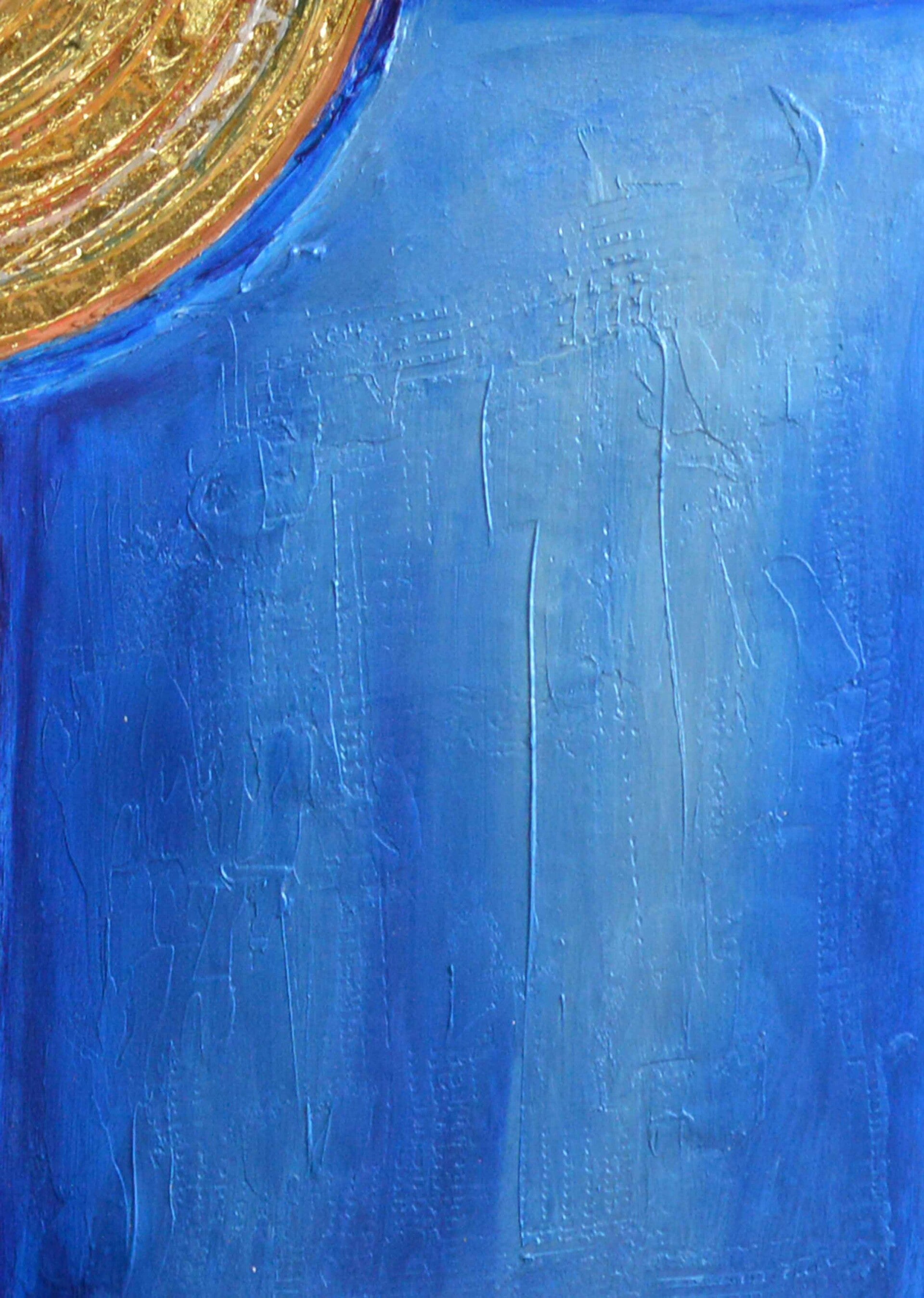 Acryl-Mischtechnik-Gemälde mit Blattgold-Veredlung. 140x100x4cm., aus 2023