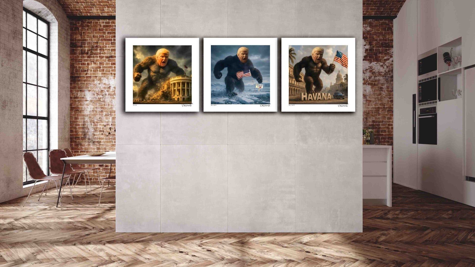 In diesem Werk habe ich die groteske Kraft von Geschichte und Politik verschmolzen, um eine surreale, fast metaphysische Spannung zu erzeugen. Die Zukunft wird durch die ikonische Figur symbolisiert, die wie in der Realität trotzig und unberechenbar wirkt. Dieses Bild soll zum Nachdenken auffordern und mit seiner symbolischen Kraft die Blicke auf sich ziehen. Ein Statement für Wandel und Widerspruch.